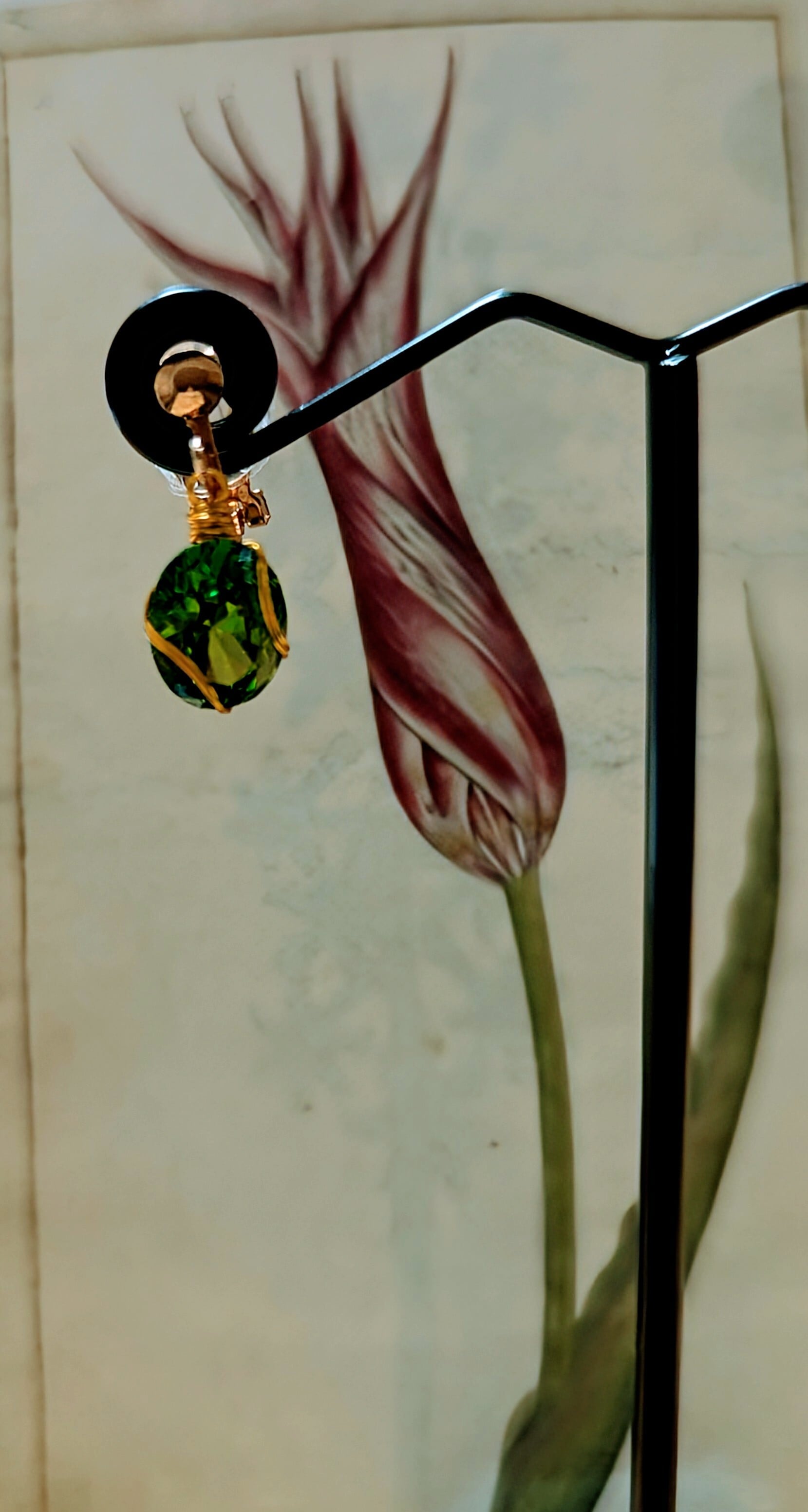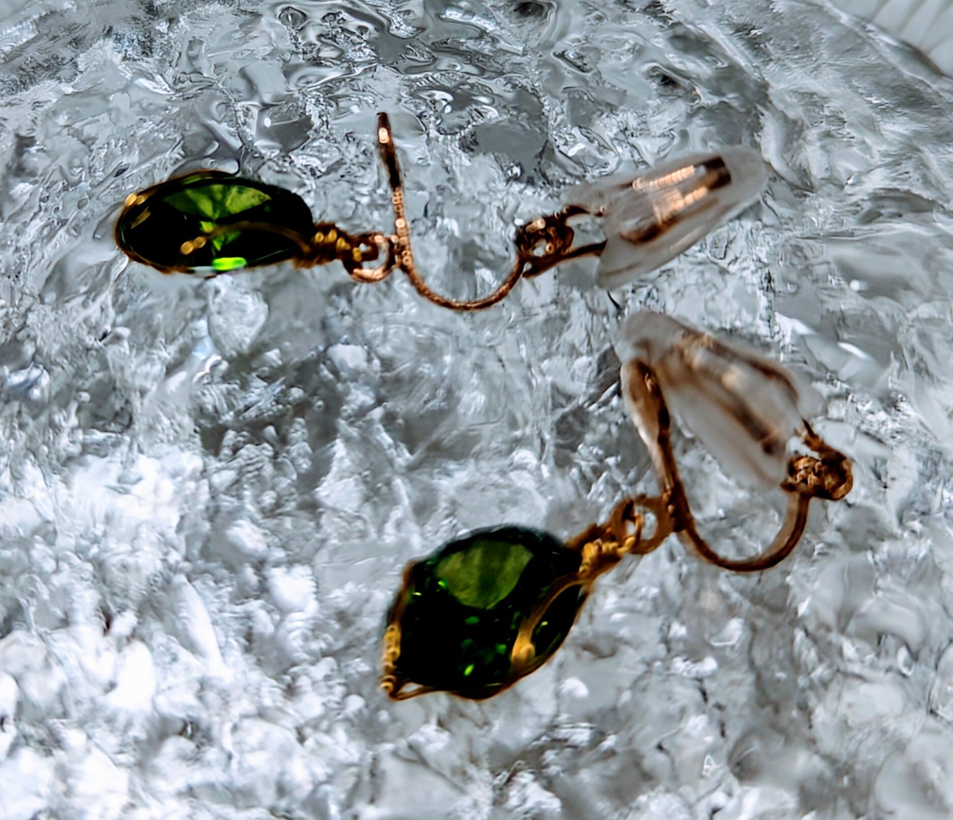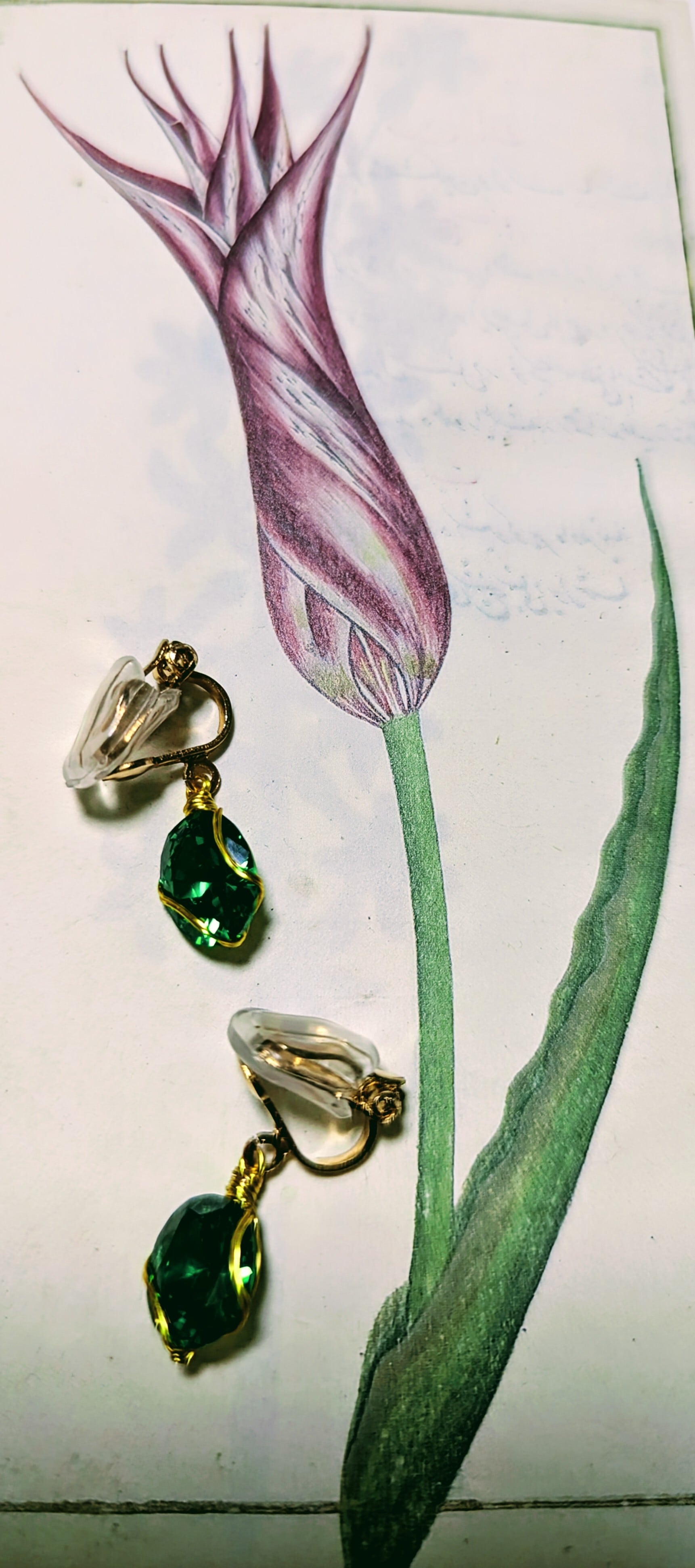 Leaf dew earrings (葉露のイヤリング)は、太陽の光に輝くエメラルドグリーン色の美しい葉露をモチーフにしたシックでエレガントなイヤリングです。